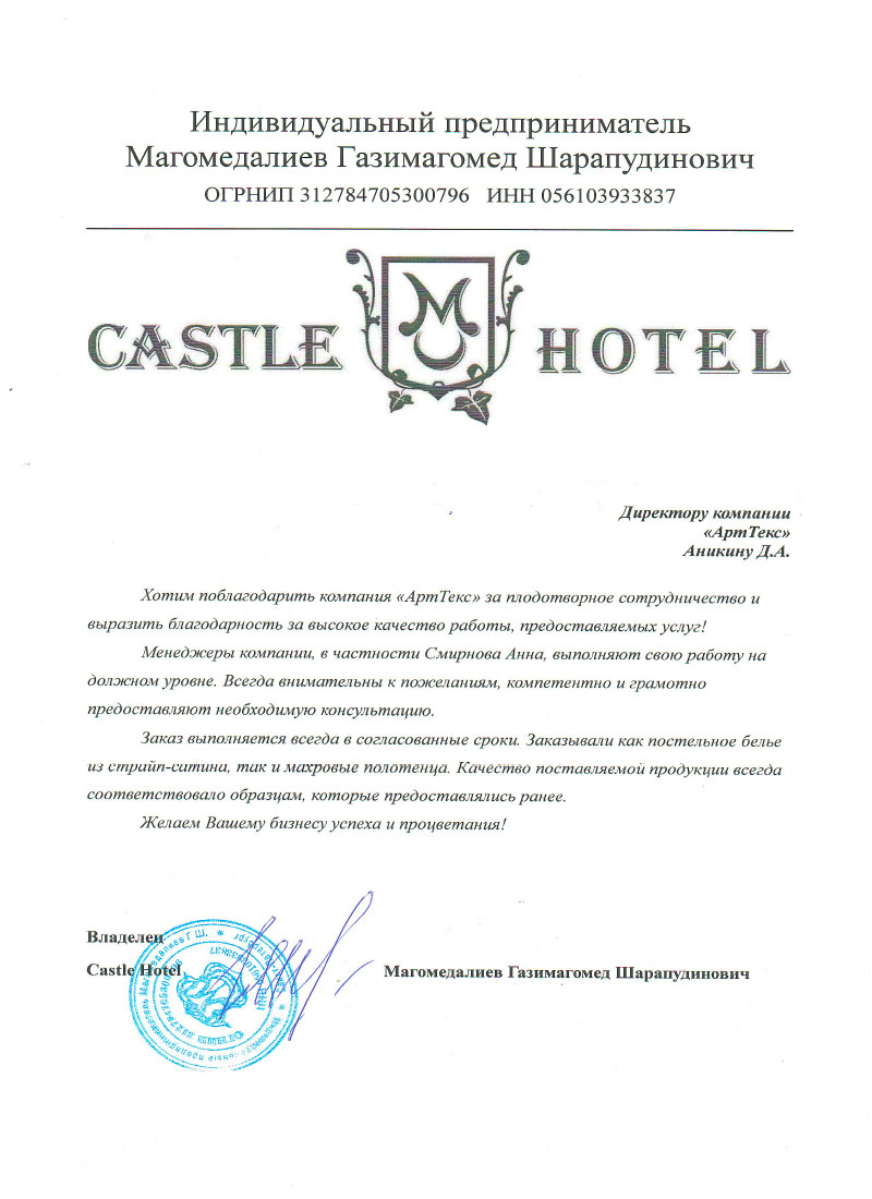Оптовая текстильная компания "АртТекс" занимается комплексным оснащением гостиниц, отелей, общежитий; кафе и ресторанов; фитнес и SPA центров; детских садов и оптовых компаний под ключ.
